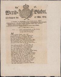 WEXJÖBLADET 1814-08-27 Fritt Upphov Ingen uppgift Utgivningsår 1814 Ingår i samling Wexjöbladet Kategori Tidningsnummer