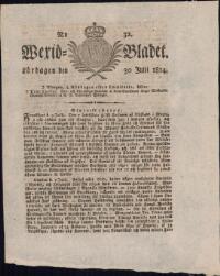 WEXJÖBLADET 1814-07-30 Fritt Upphov Ingen uppgift Utgivningsår 1814 Ingår i samling Wexjöbladet Kategori Tidningsnummer