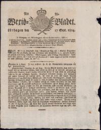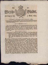 WEXJÖBLADET 1814-09-17 Fritt Upphov Ingen uppgift Utgivningsår 1814 Ingår i samling Wexjöbladet Kategori Tidningsnummer
