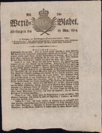 WEXJÖBLADET 1814-08-13 Fritt Upphov Ingen uppgift Utgivningsår 1814 Ingår i samling Wexjöbladet Kategori Tidningsnummer