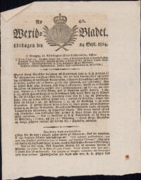 WEXJÖBLADET 1814-09-24 Fritt Upphov Ingen uppgift Utgivningsår 1814 Ingår i samling Wexjöbladet Kategori Tidningsnummer