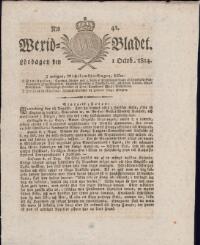 WEXJÖBLADET 1814-10-01 Fritt Upphov Ingen uppgift Utgivningsår 1814 Ingår i samling Wexjöbladet Kategori Tidningsnummer