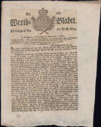 WEXJÖBLADET 1814-11-26 Fritt Upphov Ingen uppgift Utgivningsår 1814 Ingår i samling Wexjöbladet Kategori Tidningsnummer