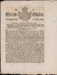 WEXJÖBLADET 1814-10-29 Fritt Upphov Ingen uppgift Utgivningsår 1814 Ingår i samling Wexjöbladet Kategori Tidningsnummer