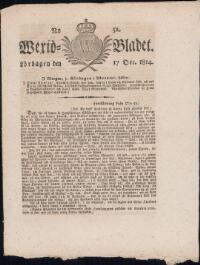 WEXJÖBLADET 1814-10-08 Fritt Upphov Ingen uppgift Utgivningsår 1814 Ingår i samling Wexjöbladet Kategori Tidningsnummer