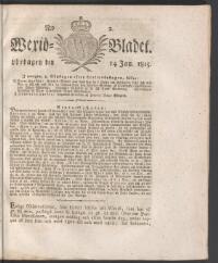 WEXJÖBLADET 1815-01-14 Fritt Upphov Ingen uppgift Utgivningsår 1815 Ingår i samling Wexjöbladet Kategori Tidningsnummer