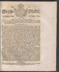 WEXJÖBLADET 1815-01-28 Fritt Upphov Ingen uppgift Utgivningsår 1815 Ingår i samling Wexjöbladet Kategori Tidningsnummer
