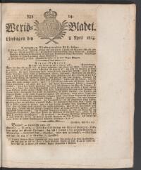 WEXJÖBLADET 1815-04-08 Fritt Upphov Ingen uppgift Utgivningsår 1815 Ingår i samling Wexjöbladet Kategori Tidningsnummer