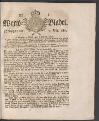 WEXJÖBLADET 1815-02-18 Fritt Upphov Ingen uppgift Utgivningsår 1815 Ingår i samling Wexjöbladet Kategori Tidningsnummer