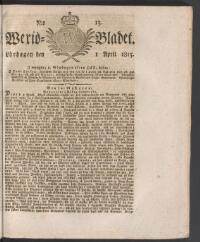 WEXJÖBLADET 1815-04-01 Fritt Upphov Ingen uppgift Utgivningsår 1815 Ingår i samling Wexjöbladet Kategori Tidningsnummer