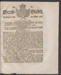 WEXJÖBLADET 1815-03-25 Fritt Upphov Ingen uppgift Utgivningsår 1815 Ingår i samling Wexjöbladet Kategori Tidningsnummer