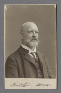 Porträtt föreställande grosshandlaren Emil Schram Fritt Upphov Edlund, Anna, 1852-1932 Utgivningsår 1900 Kategori BildBilderPorträttFotografier (påsiktsbilder)Visitkortsfotografier