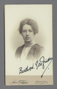 Bertha Gottfriedsson Fritt Upphov Edlund, Anna, 1852-1932 Utgivningsår 1900 Kategori BildPorträttFotografierVisitkortsfotografierBilderFotografi, positiv