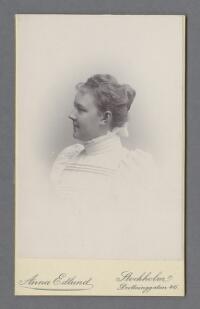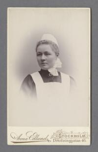 Porträtt föreställande Siri Norelius Fritt Upphov Edlund, Anna, 1852-1932 Utgivningsår 1900 Kategori BildPorträttFotografierVisitkortsfotografierBilder