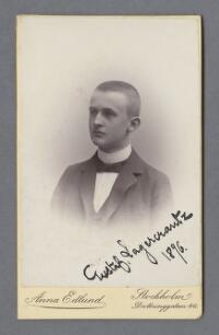 Porträtt av Gustaf Lagercrantz Fritt Upphov Edlund, Anna, 1852-1932 Utgivningsår 1896 Kategori BildPorträttFotografierVisitkortsfotografierBilder