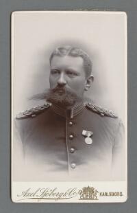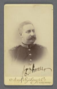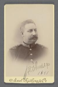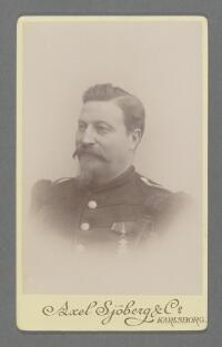Porträtt föreställande kapten Carl Scheffer Fritt Upphov Axel Sjöberg & Co Utgivningsår 1889 Kategori BildBilderPorträttFotografier (påsiktsbilder)Visitkortsfotografier