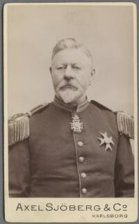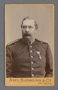 Porträtt föreställande överstelöjtnanten Carl von Bahr Fritt Upphov Axel Sjöberg & Co Utgivningsår 1880 Kategori BildBilderPorträttFotografier (påsiktsbilder)Visitkortsfotografier