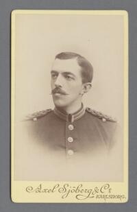 Porträtt föreställande löjtnant Ture Sundholm Fritt Upphov Axel Sjöberg & Co Utgivningsår 1880 Kategori BildBilderPorträttFotografier (påsiktsbilder)Visitkortsfotografier