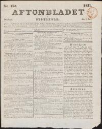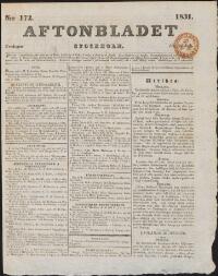 AFTONBLADET 1831-06-30 Fritt Upphov Ingen uppgift Utgivningsår 1831 Ingår i samling AftonbladetAftonbladet