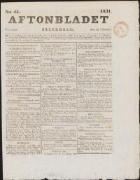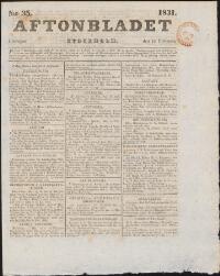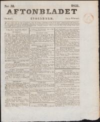 AFTONBLADET 1831-02-08 Fritt Upphov Ingen uppgift Utgivningsår 1831 Ingår i samling AftonbladetAftonbladet