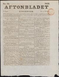 AFTONBLADET 1831-02-10 Fritt Upphov Ingen uppgift Utgivningsår 1831 Ingår i samling AftonbladetAftonbladet