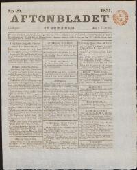AFTONBLADET 1831-02-28 Fritt Upphov Ingen uppgift Utgivningsår 1831 Ingår i samling AftonbladetAftonbladet