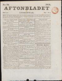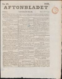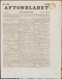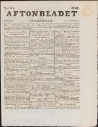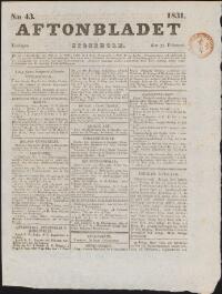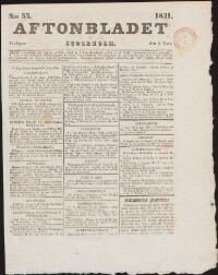 AFTONBLADET 1831-02-21 Fritt Upphov Ingen uppgift Utgivningsår 1831 Ingår i samling AftonbladetAftonbladet