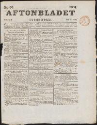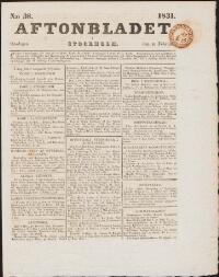 AFTONBLADET 1831-02-26 Fritt Upphov Ingen uppgift Utgivningsår 1831 Ingår i samling AftonbladetAftonbladet