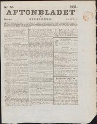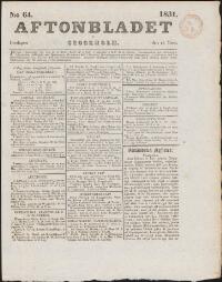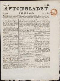 AFTONBLADET 1831-03-15 Fritt Upphov Ingen uppgift Utgivningsår 1831 Ingår i samling AftonbladetAftonbladet