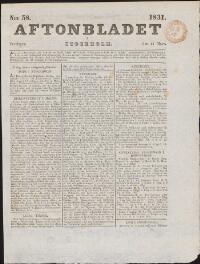 AFTONBLADET 1831-03-09 Fritt Upphov Ingen uppgift Utgivningsår 1831 Ingår i samling AftonbladetAftonbladet