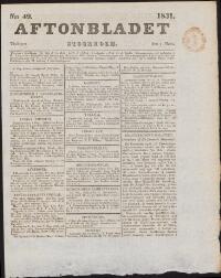 AFTONBLADET 1831-03-01 Fritt Upphov Ingen uppgift Utgivningsår 1831 Ingår i samling AftonbladetAftonbladet