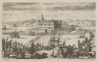 Vestigia hodierna vetustissimæ arcis et Vestrogothicorum Regum Sedes Edsborg, cum facie locorum vicinorum. Sita est illa fluvio Giötha alf in Vestrogothia
