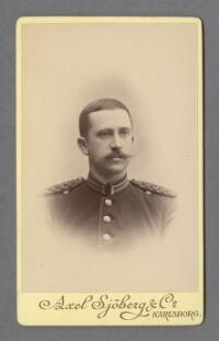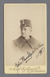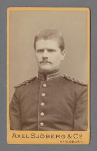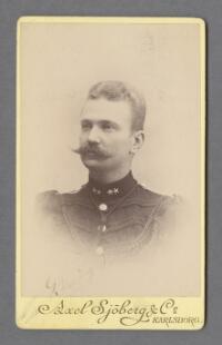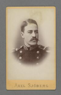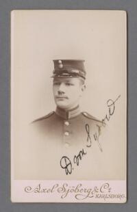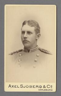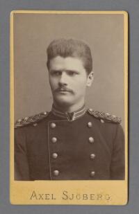 Porträtt föreställande Ivar Norrman iklädd militäruniform Fritt Upphov Sjöberg, Axel, 1865-1936 Utgivningsår 1888 Kategori BildPorträttFotografierVisitkortsfotografierBilder