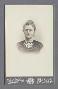 Porträtt föreställande Emma Brusewitz Fritt Upphov Sjöberg, Axel, 1865-1936 Utgivningsår 1890 Kategori BildBilderPorträttFotografier (påsiktsbilder)Visitkortsfotografier
