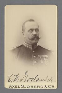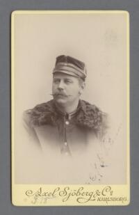 Porträtt föreställande kaptenen Carl Wahlquist Fritt Upphov Sjöberg, Axel, 1865-1936 Utgivningsår 1890 Kategori BildBilderPorträttFotografier (påsiktsbilder)Visitkortsfotografier