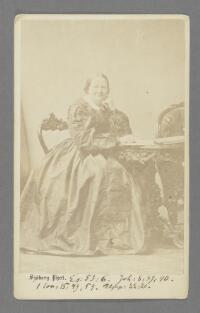 Porträtt föreställande filantropen Elsa Borg Fritt Upphov Sjöberg, K. A., 1823-1904 Utgivningsår 1870 Kategori BildBilderPorträttFotografier (påsiktsbilder)Visitkortsfotografier