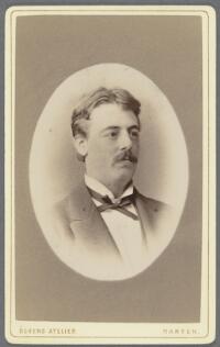 Porträtt föreställande läkare Manne Bergengren Fritt Upphov Ögrens Ateljé Utgivningsår 1880 Kategori BildBilderPorträttFotografier (påsiktsbilder)Visitkortsfotografier