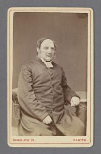 Porträtt föreställande kyrkoherde Åkerblom Fritt Upphov Ögrens Ateljé Utgivningsår 1865 Kategori BildBilderPorträttFotografier (påsiktsbilder)Visitkortsfotografier