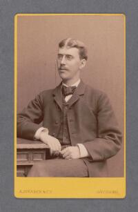 Porträtt föreställande ingenjör Birger Charleville Fritt Upphov A. Jonason & Co Utgivningsår 1886 Kategori BildBilderPorträttFotografier (påsiktsbilder)Visitkortsfotografier