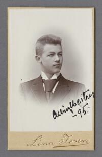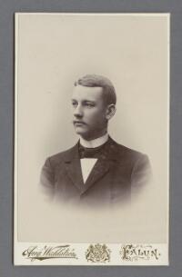 Porträtt föreställande Albin Westrup Fritt Upphov Jonn, Lina, 1861-1896 Utgivningsår 1895 Kategori BildBilderPorträttFotografier (påsiktsbilder)Visitkortsfotografier