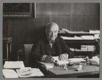 Per Albin Hansson sittande vid skrivbord Fritt Upphov Ingen uppgift Utgivningsår 1932 Kategori BildBilderPorträttFotografier