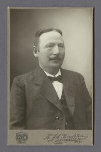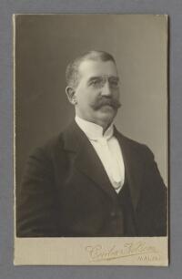Porträtt föreställande veterinären Albin Setterbom Fritt Upphov Ingen uppgift Utgivningsår 1900 Kategori BildBilderPorträttFotografier (påsiktsbilder)Visitkortsfotografier