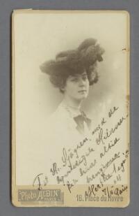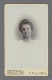 Porträtt föreställande Hertha Thode Fritt Upphov Albin Utgivningsår 1904 Kategori BildBilderPorträttFotografier (påsiktsbilder)Visitkortsfotografier