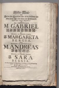Giffto-waal och om det ädla qwinkönet intet är den förnämsta orsaken til den roo som finnes uti gifftermåhl; stält under wijdare ompröfwan; då den högwällärde herren m. Gabriel Haartman, med ehreborne och dygdedle jungfrun j. Margareta Bergia, samt ehrewyrdige och högwällärde herren m. Andreas Bange, med ehreborne och dygdedle junfrun j. Sara Bergia, uti hög och fönämnt folcks närwaro, sin heders- och wijgningz-dag fijrade uti Åbo stad den 1 octob. 1707. Af the unge contrahenters troförbundne och tiensthörsamme tienare.