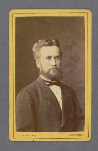 Porträtt föreställande Andreas Blom Fritt Upphov Szacinski, L., 1844-1894, (Ludwik) Utgivningsår 1876 Kategori BildBilderPorträttFotografier (påsiktsbilder)Visitkortsfotografier
