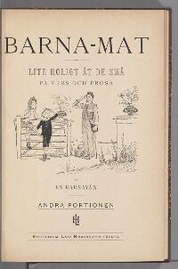 Barnamat, lite roligt åt de små på vers och prosa. Fritt Upphov Romdahl, Clara Utgivningsår Ingen uppgift Kategori Ej skönlitteratur