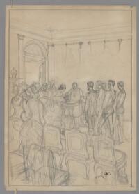 Gudstjänst störs av arga människor med tillhyggen Fritt Upphov Andrén, Victor, 1856-1930 Utgivningsår 1875 Kategori BildSkarapkartongBläck- och tuschteckningarBilder