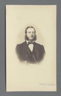 Porträtt föreställande fabriksidkare Fredrik Åslund Fritt Upphov Blom, C. B., 1826-1908 Utgivningsår 1860 Kategori BildBilderPorträttFotografier (påsiktsbilder)Visitkortsfotografier