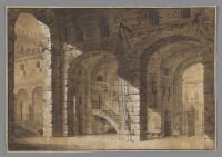 Stenbyggnad med innergård med höga valv och pelare Fritt Upphov Boije, Fredrik, 1773-1857 Utgivningsår 1790 Kategori BildBilderLaveringar