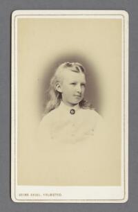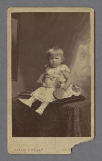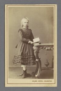 Porträtt föreställande Gertrud Boström Fritt Upphov Hansen & Weller Utgivningsår 1880 Kategori BildBilderPorträttFotografier (påsiktsbilder)VisitkortsfotografierBarnporträtt